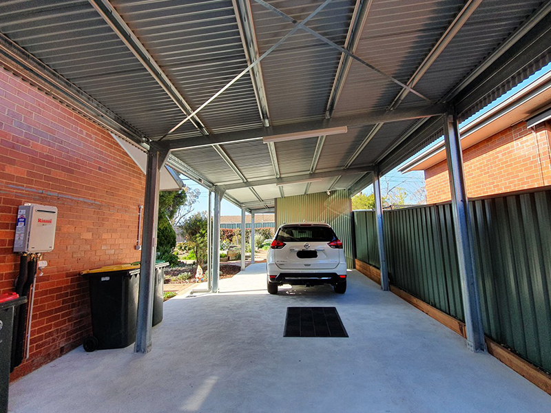 Details for this project: 14.5m x 4.35m x 3.14m in COLORBOND steel's Pale Eucalyp® and Woodland Grey®.
