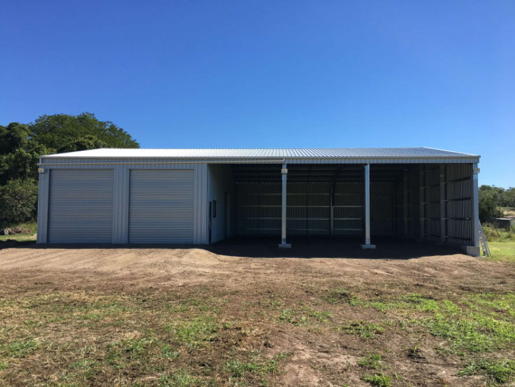 This simple and effective design incorporates a two bay lockable workshop with three open bays for the storage of a range of vehicles and farm equipment. Being located in a cyclonic region this shed is designed and engineered to meet or exceed cyclonic shed requirements.