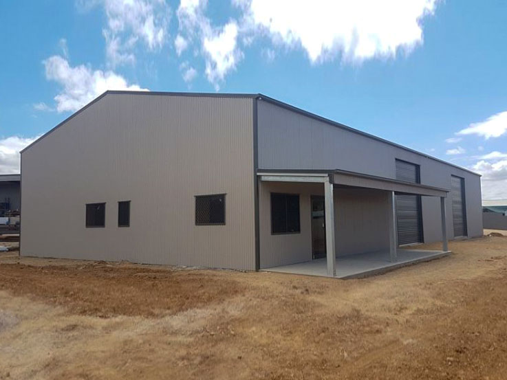 This is the shed that all shed lovers dream of. With ample roof for industrial storage and a built-in office, this shed ticks all the boxes for this commerical client.