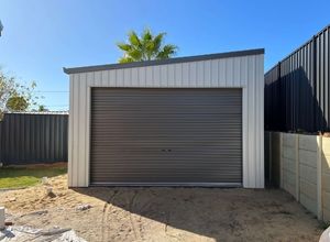 Fitting in a perfect little nook in the backyard this shed sits at 5m x 7m x 3.53m styled in COLORBOND Surfmist® and Wallaby®.