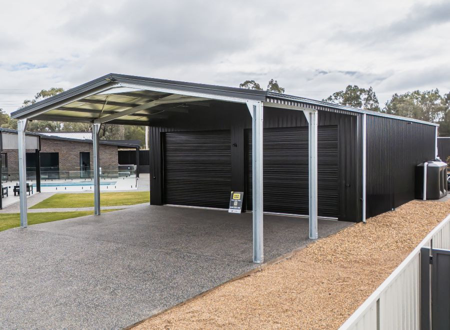 Adding to a street already lined with impressive sheds by Sheds n Homes Dubbo, this residence took a distinctive approach with a sleek Night Sky® finish. Spacious, modern, and designed to impress, The Night Sky® Stunner delivers generous storage and a bold presence in the backyard. With room to park large vehicles under cover and a sizeable enclosed space behind, it’s as functional as it is striking.