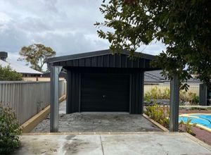 Well, this shed can do all that and also comes with some coverage if you wanted to set up a little outdoor seating arrangements to watch the kids in the pool. Spanning 4m x 11.5m x 2.75m, styled in COLORBOND Basalt® and Monument®.