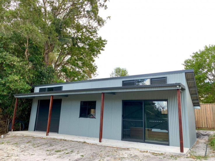 Our ability to be flexible in the design process allowed Lorraine to source her own Kwila timber posts for the lean-to - we like her style.