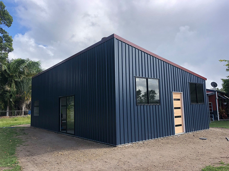 Our Gympie team delivered a modern liveable shed, often called a shouse, that shows the versatility of these designs. The bold skillion roofline is finished with COLORBOND® Manor Red® trimmings, while a timber access door, glass sliding door and windows bring warmth and natural light. At 12m x 7m x 3m, it is a great example of turning a shed into a functional and stylish home.